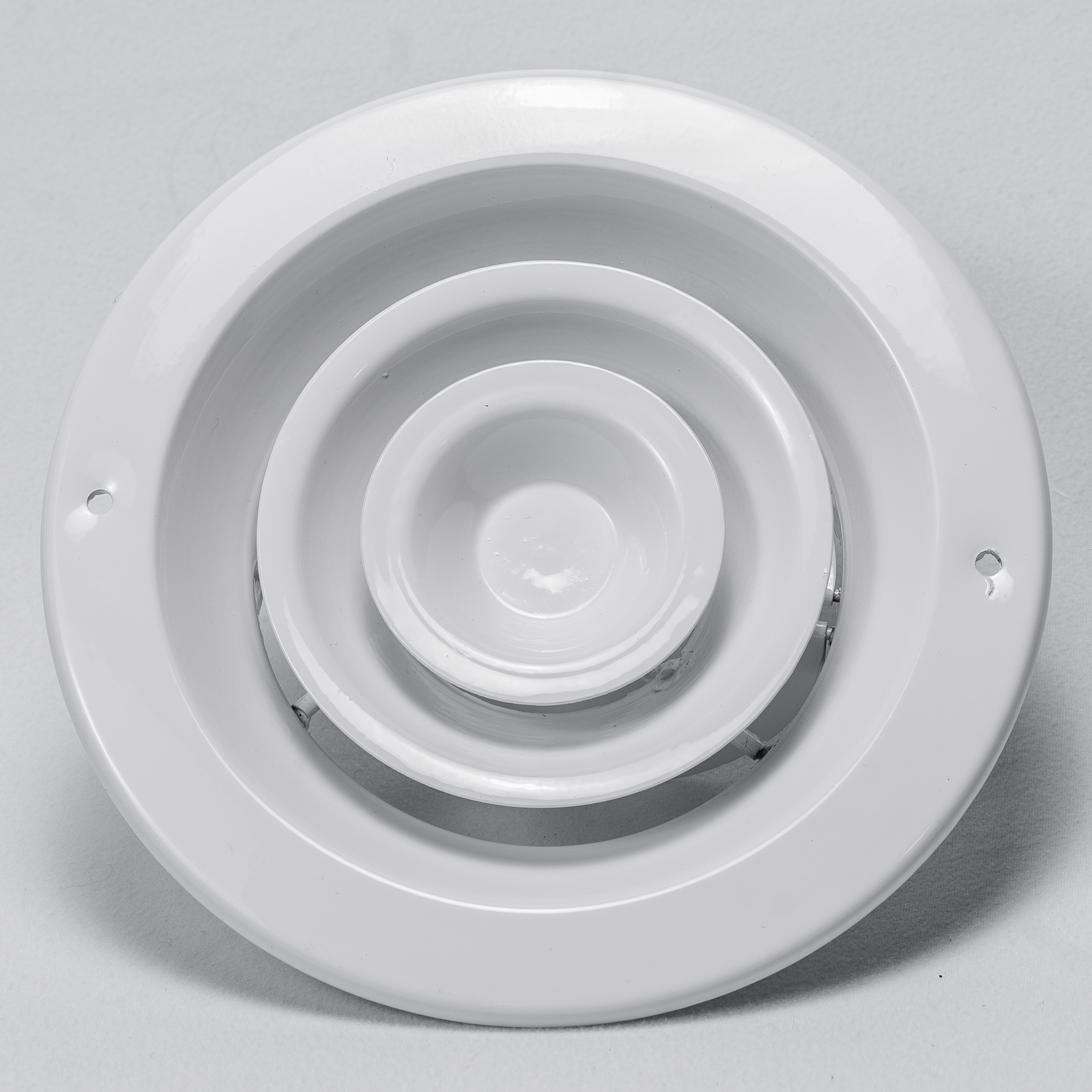 Los Difusores Redondos están diseñados para ofrecer una inyección de aire en 360°. Su forma circular asegura una distribución uniforme en todas las direcciones, lo que se traduce en un alto índice de inducción en el ambiente. Esto los convierte en una opción ideal para mantener un clima confortable en cualquier espacio