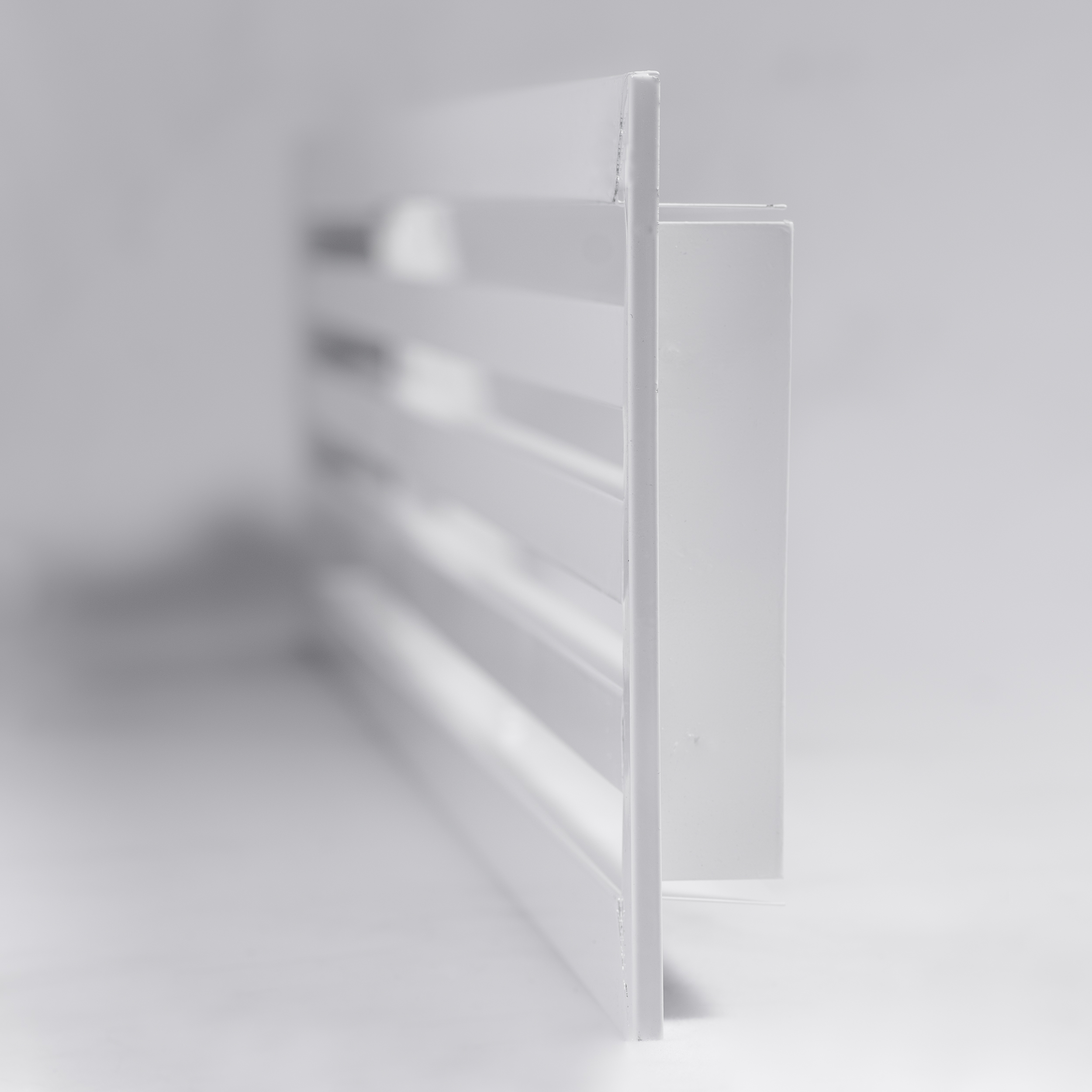 Fabricados con un marco de chapa galvanizada y ranuras de aluminio, estos difusores garantizan durabilidad y un rendimiento óptimo. Además, su terminación en color blanco electrostático horneado les otorga un acabado pulcro y atractivo, asegurando que se mantenga la armonía visual en el entorno